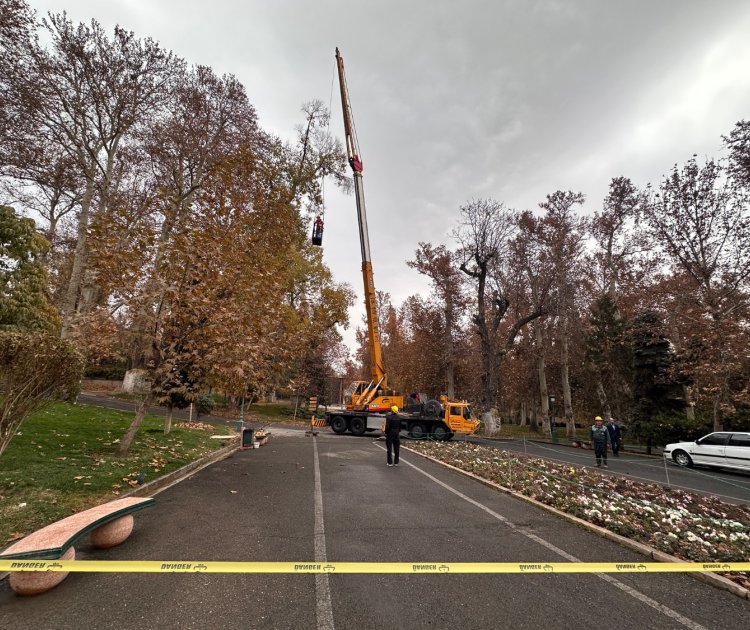 اجرای عملیات هرس و خشکه‌برداری درختان باغ نیاوران
