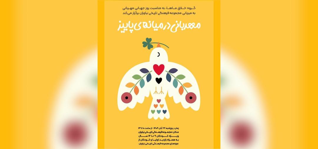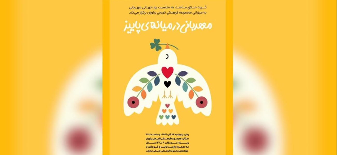 به گزارش روابط عمومی مجموعه فرهنگی تاریخی نیاوران، این برنامه با همکاری گروه خلاق «ماها» و با هدف پاسداشت مفاهیم انسانی همچون مهربانی، دوستی و همدلی و پیوند آنها با هنر، تاریخ و فرهنگ ایرانزمین، ویژه کودکان 9 تا 12 سال طراحی و اجرا شد.