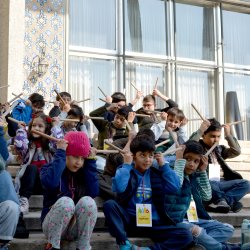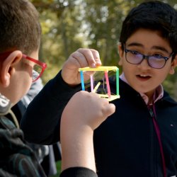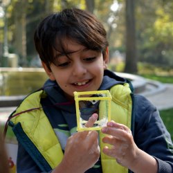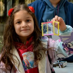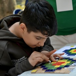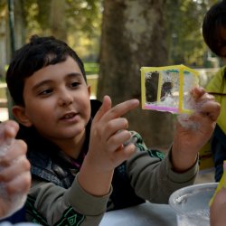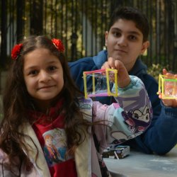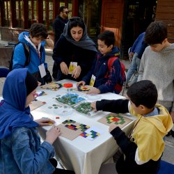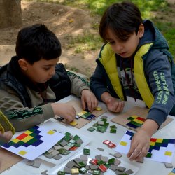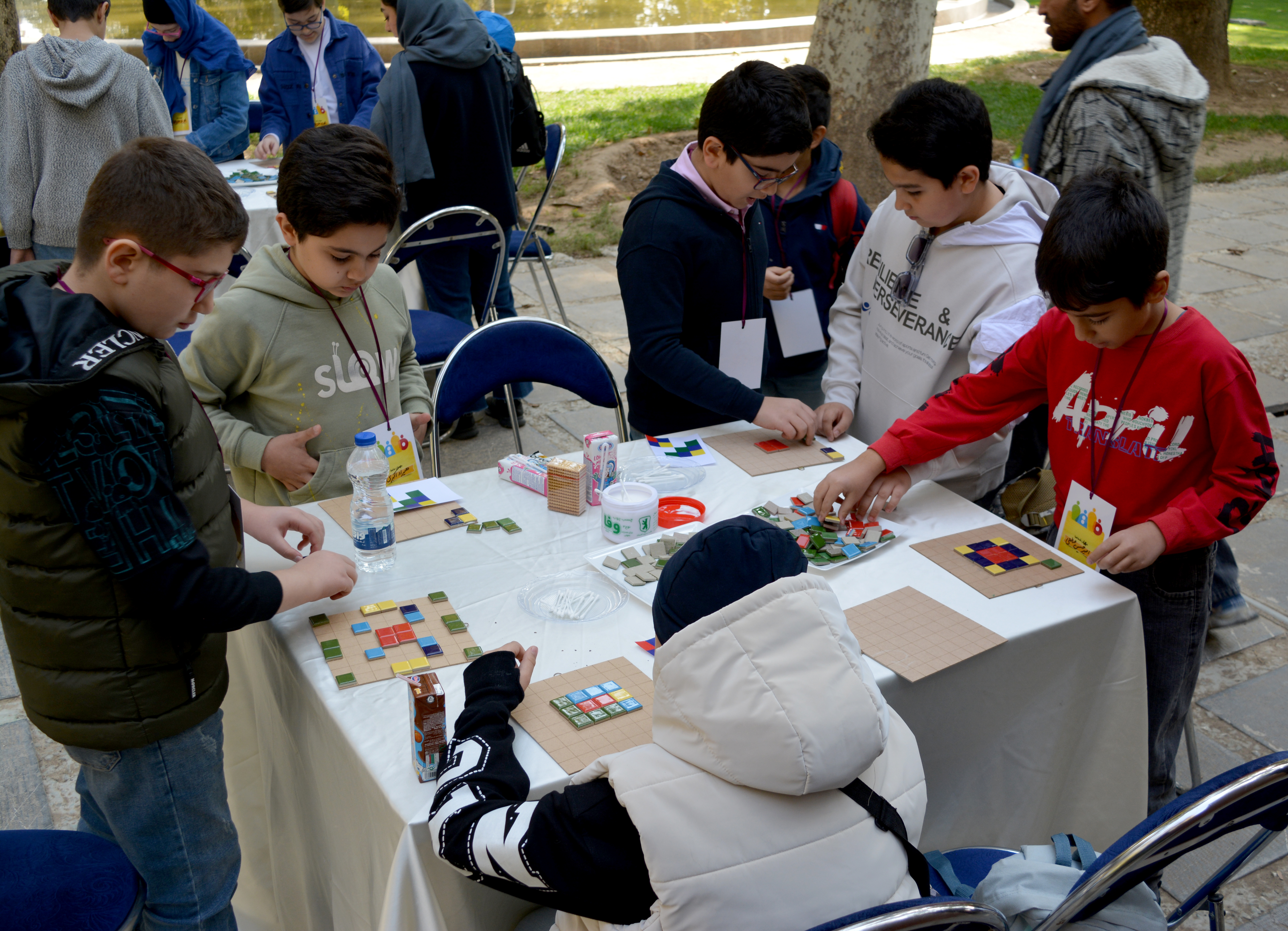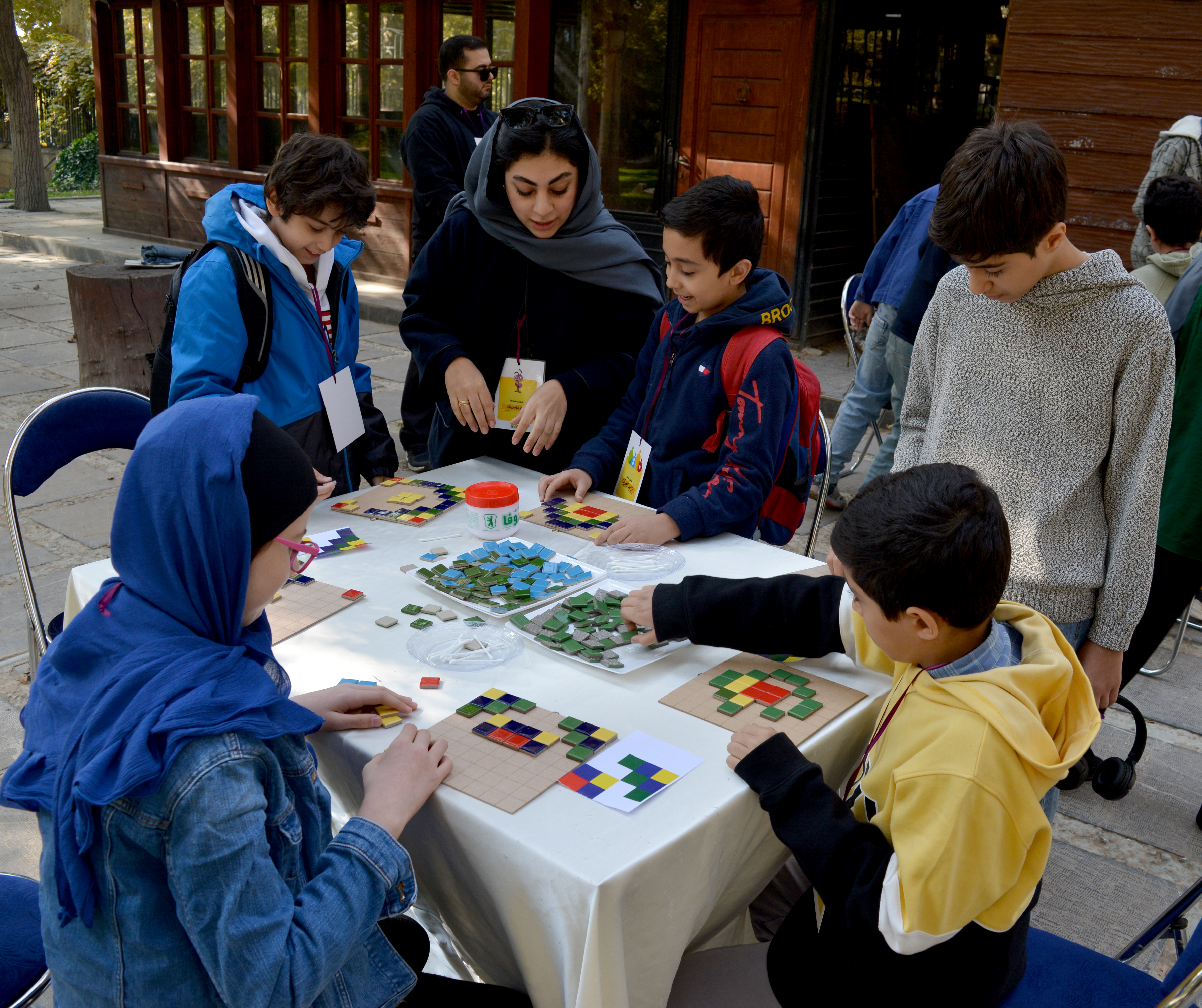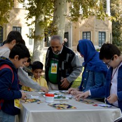در ادامه، در ایستگاه هنر و هندسه با عنوان «تقارن مهربانی»، کودکان با الهام از تقارن، نظم و زیبایی در هنر ایرانی، تابلوهایی با نقشها و رنگهای پاییزی خلق کردند.