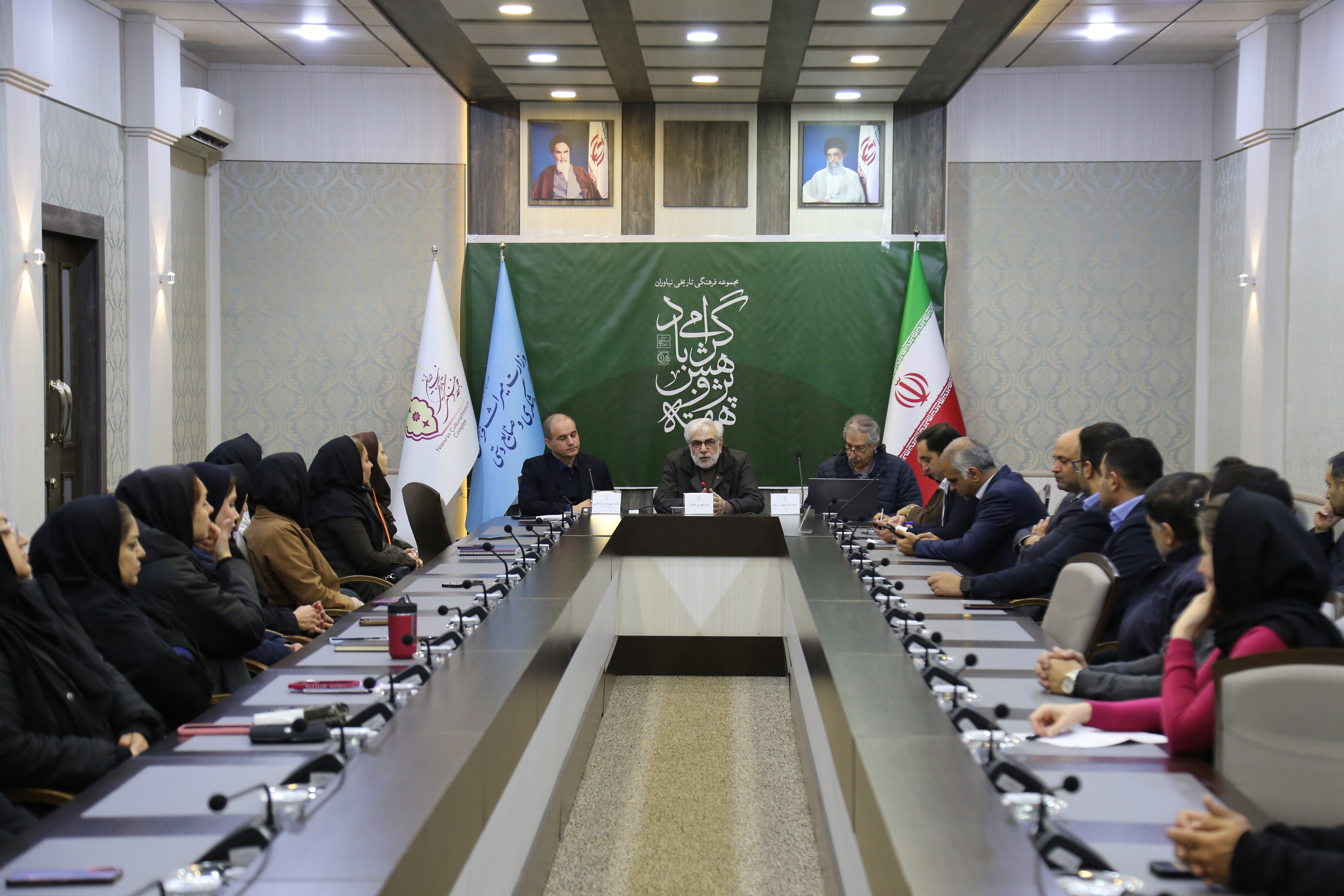نخستین نشست از سلسله نشستهای تخصصی مجموعه فرهنگیـتاریخی نیاوران، به مناسبت هفته پژوهش، صبح روز یکشنبه 23 آذرماه با موضوع «بررسی تاریخ ساخت، معمار سازنده و ساختار معماری کوشک احمدشاهی» و با سخنرانی دکتر مهدی حجت و مهندس عبدالمجید آبراهام در سالن کنفرانس این مجموعه برگزار شد.