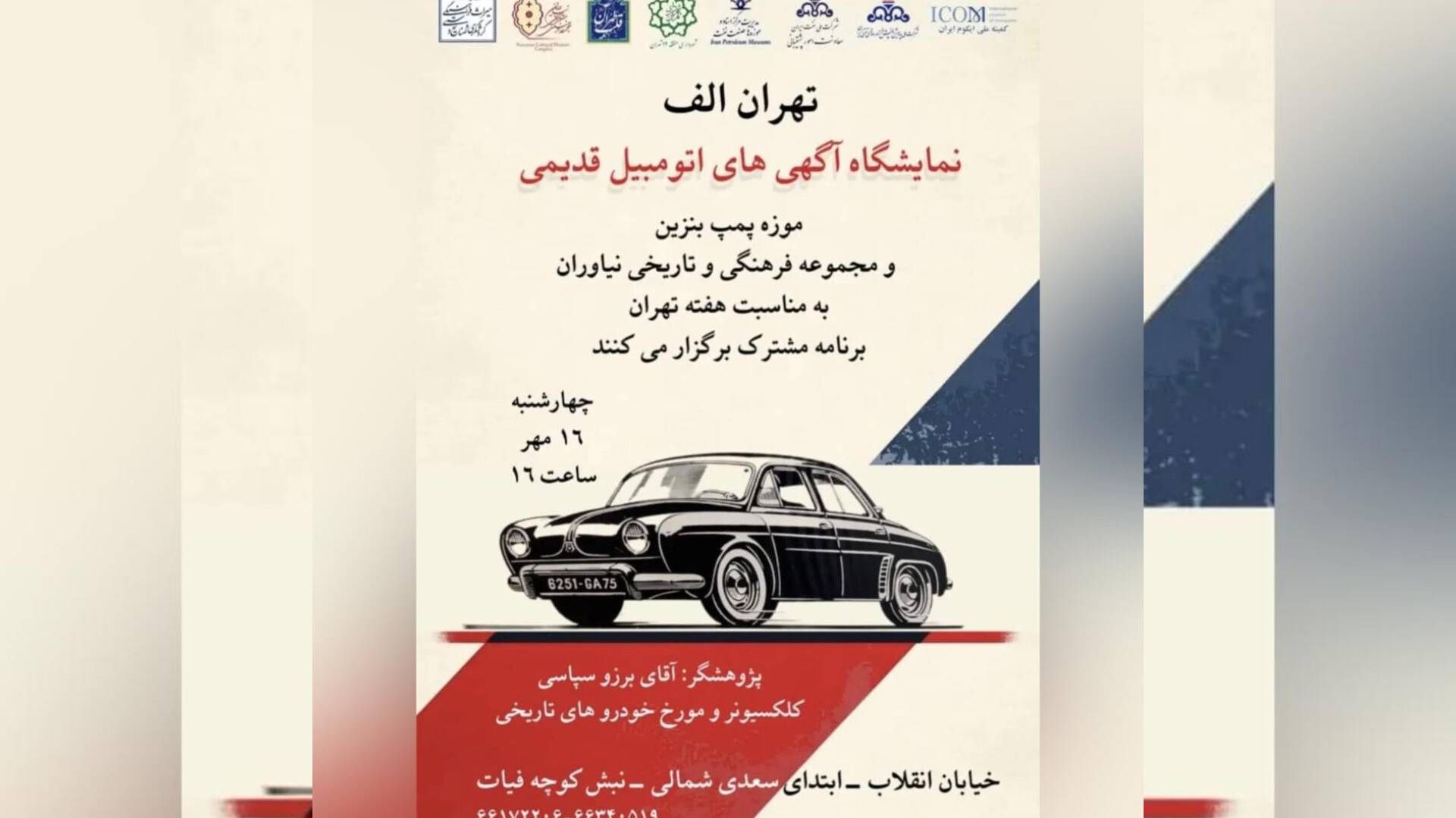 به گزارش روابط عمومی مجموعه فرهنگی تاریخی نیاوران، به مناسبت هفته تهران، نمایشگاهی از آگهیهای اتومبیل قدیمی که بهطور ویژه به تاریخچه و فرهنگ خودروهای کلاسیک و نوستالژیک تهران میپردازد، با مشارکت مجموعه نیاوران،در محل موزه پمپ بنزین برگزار شده است.
