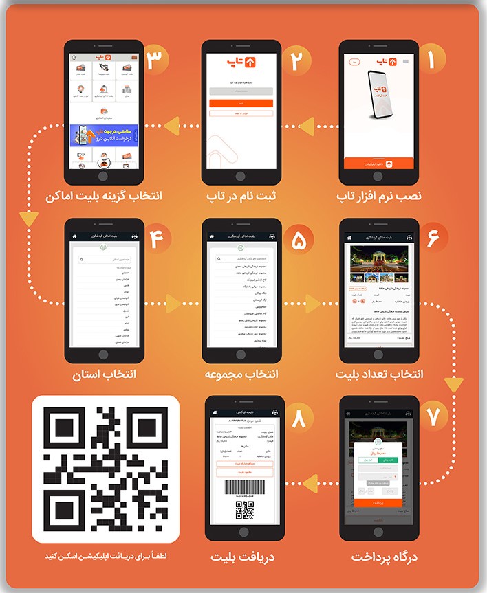 بلیط مجموعه را هم به صورت حضوری و هم به صورت آنلاین از اپلیکیشن تاپ (( بخش اماکن گردشگری ))