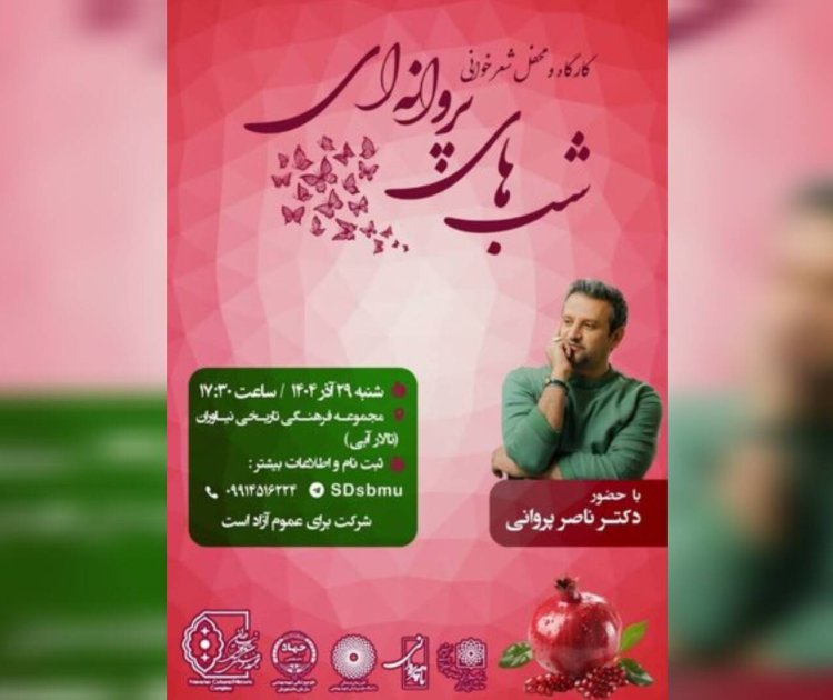 کارگاه ادبی «شبهای پروانهای» همزمان با آیین کهن شب یلدا، با حضور دکتر ناصر پروانی شاعر و نویسنده حوزه ادبیات فارسی، روز 29 آذرماه 1404 در تالار آبی مجموعه فرهنگیـتاریخی کاخ نیاوران برگزار شد.